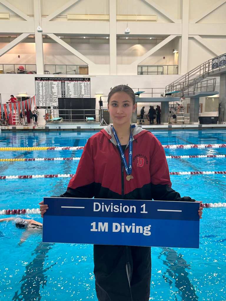 During the pandemic, in her 8th grade year at Morton Middle School, middle sports were cancelled and Rachael was given the opportunity to compete for Durfee in all three seasons. It was then that she got her first taste of diving, as she tried to utilize the skills from her gymnastics days.